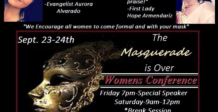 2 Days filled with Power, Praise, and RAW Annointing! You will not want to miss out! We encourage you to register for only $10 this includes so much more than just a lunch...it includes JESUS, Healing, Refreshment, Salvation, and so much more! What is there to lose??? Tired mother, weary daughter, empty neighbor, broken women....the Masquerade is OVER...it's time to come to CHRIST!!